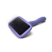 The Kärben Lavender Slicker Brushes by Chris Christensen deliver professional level results for Groomers, Handlers, Dog Show Enthusiasts, and Pet Owners who prioritize exceptional coat care. Each brush is thoughtfully engineered to help maintain coat integrity while offering a smooth and efficient grooming experience. The NEW Lavender edition of the Kärben Slicker features the same pin pad, 17mm pins, and ergonomic handle but now in several sizes and shapes and with a lavender, non-slip grip coating. The Kärben Slickers glide easily through the coat to remove tangles, mats, loose hair, and debris, helping prevent impacted matting that can lead to irritation of the skin. This brush has a medium-length, 17mm pin which makes it a versatile brush excellent for fluffing, adding lift to the coat, and working through moderately thick or densely textured coat types of short- to medium-length. Crafted for comfort and control, Kärben Slickers feature an ergonomic handle paired with 17mm high-quality stainless-steel pins for optimal reach and performance. Whether you're maintaining a pet’s daily grooming routine or preparing a show dog for the ring, the Kärben Lavender Slicker Brush offers reliable results you can feel in every stroke.